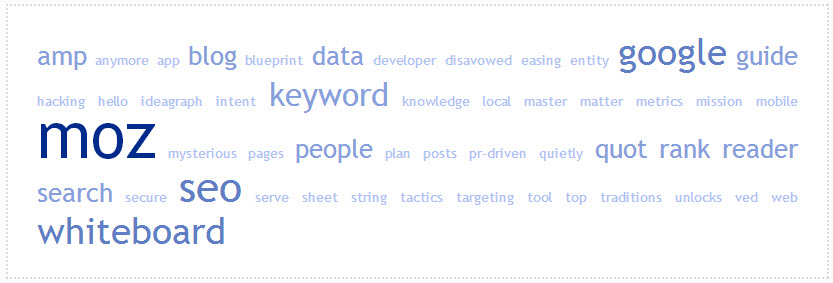From this, I can export the top performing URLs to Excel and gather their page titles using the SEO Tools plugin. To make things a little easier to visualise, I sometimes import all of the page titles into TagCrowd in order to make a tag cloud consisting of the most common phrases within the content titles: