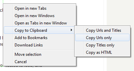 Extra Tip - this tool also allows you to open highlighted links in other tabs which can be very useful for link prospecting. However be careful, if you do not want this, make sure you keep hold of the right mouse button! If you release it, all tabs will open at the same time. Opening loads of tabs in Firefox at the same time can slow it down a lot - I've done it with over a hundred links before and crashed it.