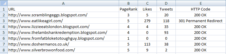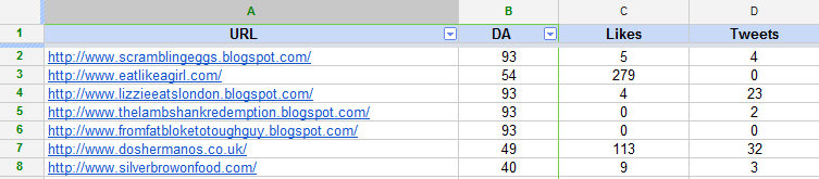 Once you've gathered these metrics, you can start to filter and sort by whichever metrics matter to you. I tend to look for large numbers of social shares and then look at PageRank as a rough indicator. Whilst PageRank isn't perfect, it's still useful for filtering large sets of data.