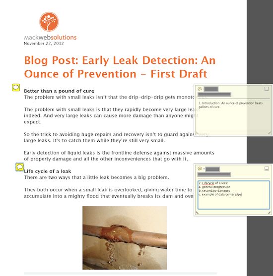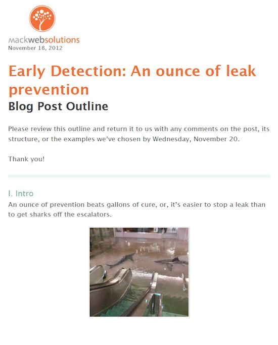 This part takes me back to my English teaching days. When we turn in the first draft, we actually diagram the post to illustrate the pieces of the original outline and where the key takeaways ended up. And, if the client provided some very specific direction or feedback to us, we make sure to indicate that they were heard by pointing those out in the diagramming.