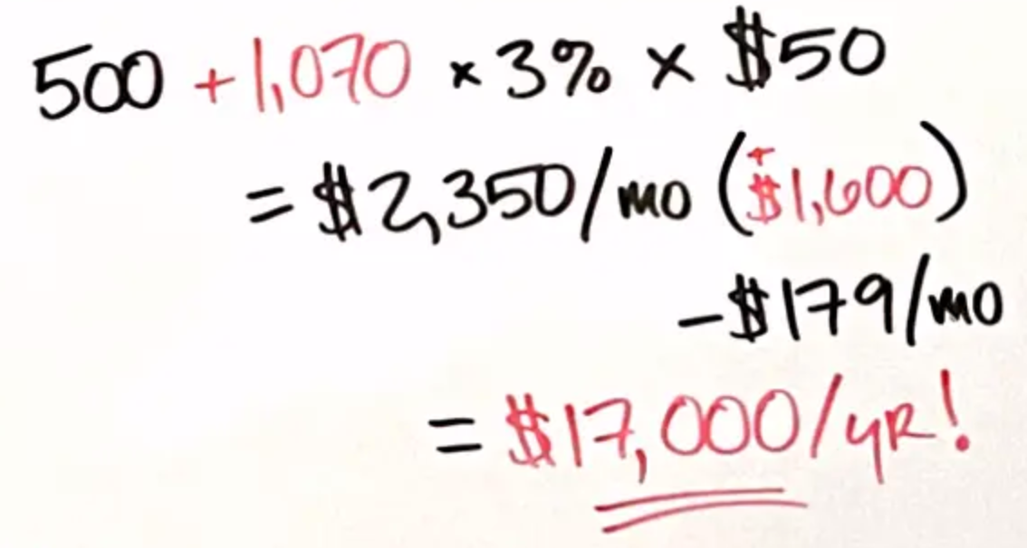 If she can do that, then that much greater increase in organic click-throughs, with that constant conversion rate and the price of the widget, is going to get us an extra $1,600 per month in profits. Again, if we take out the cost of that tool, that is going to come out to $17,000 per year.