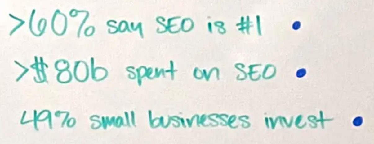 But here's something else that's interesting. We saw a recent study that said that only 49% of small businesses say that they invest in SEO. So this is interesting because almost 100% of purchases these days involve organic search in some way, and yet less than half of American small businesses are doing the work that it takes to become part of that buyer journey. So if you are a small business or if you're an agency that works with SMBs, then, yes, your biggest competitors are absolutely already investing in SEO.