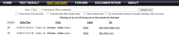 To do so, repeat the steps above to generate a new test, but now using the URL of your competitor. Run your test and then click Test History. You'll see something like this: