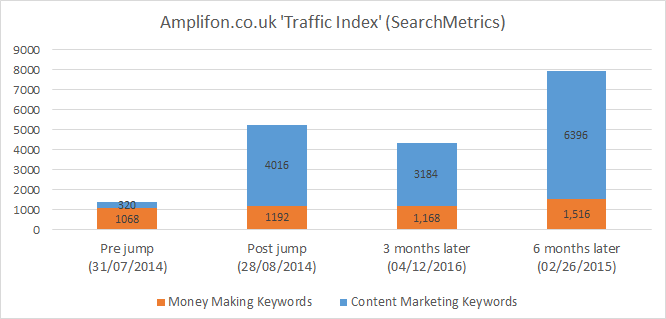 SEMRush Number of Ranking Keywords Graph for Amplifon.co.uk. *SEMRush expanded their tracked keyword set for UK in February 2016, but this jump in keywords does not relate to improved real-life traffic for the website.