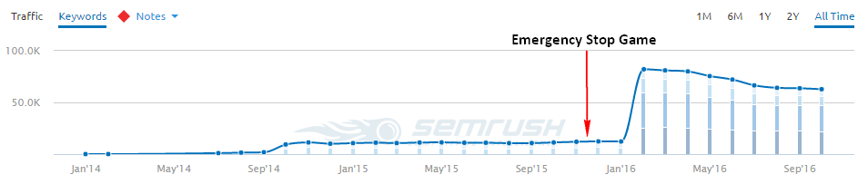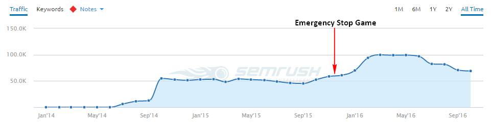 After releasing 5 content marketing projects with average success over September and October, we kicked off on the piece that was going beat all of our expectations: Emergency Stop Game.