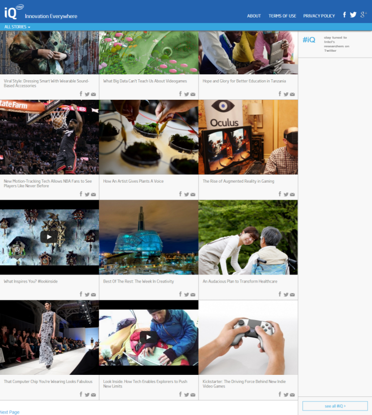 Intel’s employees took the initiatives to create Intel IQ, their own social content curation platform that collects trending technology news. Visitors can read featured stories that were either created by Intel or curated from other online sources. Besides that, you’ll see breaking news related to tech and gadgets as well as a content stream that collects tweets containing the #IQ hashtag. All content curated here can be shared out by visitors.