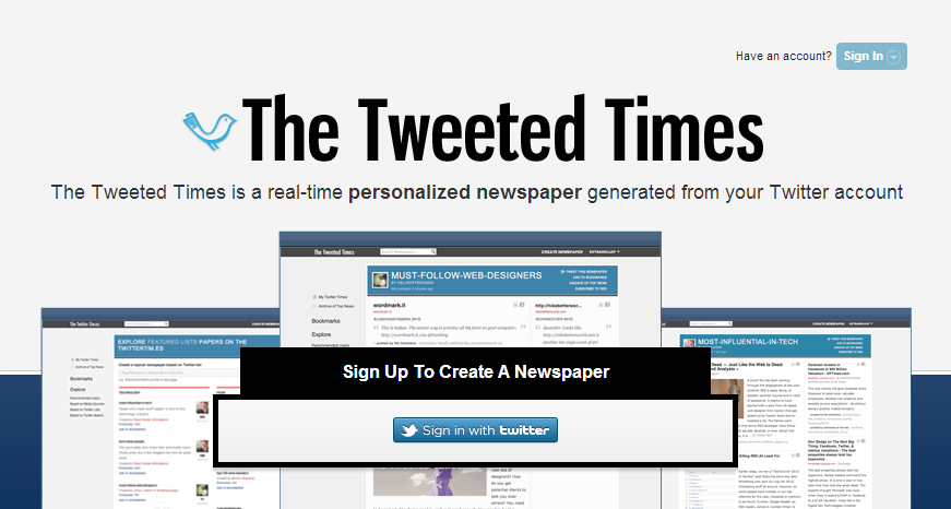 Do you dread logging into your Twitter account due to the invading torrent of tweets? The Tweeted Times lets you counter the dread, and instead helps you gain the best out of your Twitter stream. Your customized newspaper is based on the latest news aggregated by Twitter Lists or Twitter Search so that you’ll always be in the know.