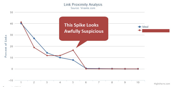Even though paid links only represent a ~25% proportion of their link profile, we were able to detect this anomaly quite easily. Here is the Link Proximity Analysis tool so that you can analyze your own site.