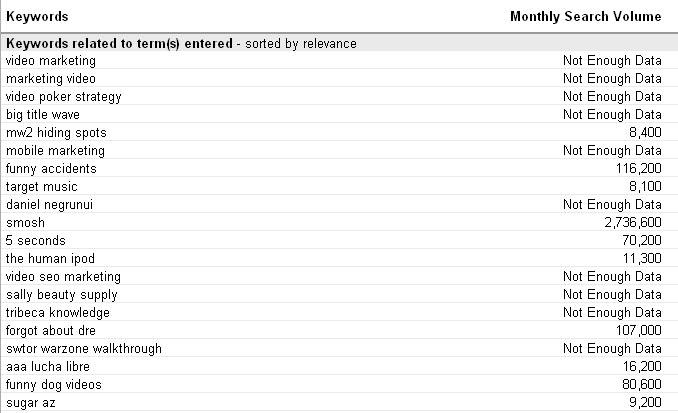 On the one hand, an advantage of getting more YouTube views is that your success can actually snowball. If your video gets a lot of views it will show up more often within YouTube searches and as “related video” – think of it as SEO exclusively for within YouTube. This is a clear advantage that you can’t get any other way besides putting your video on the Tube. For this to pay dividends, however, your video has to be good enough to get the process jump-started, and the content has to be something people are actually searching for on YouTube. We consulted the YT Keyword Tool to help us evaluate how much searching is going on for content like ours. Here are the results we got for the terms video marketing, video hosting and video strategy: