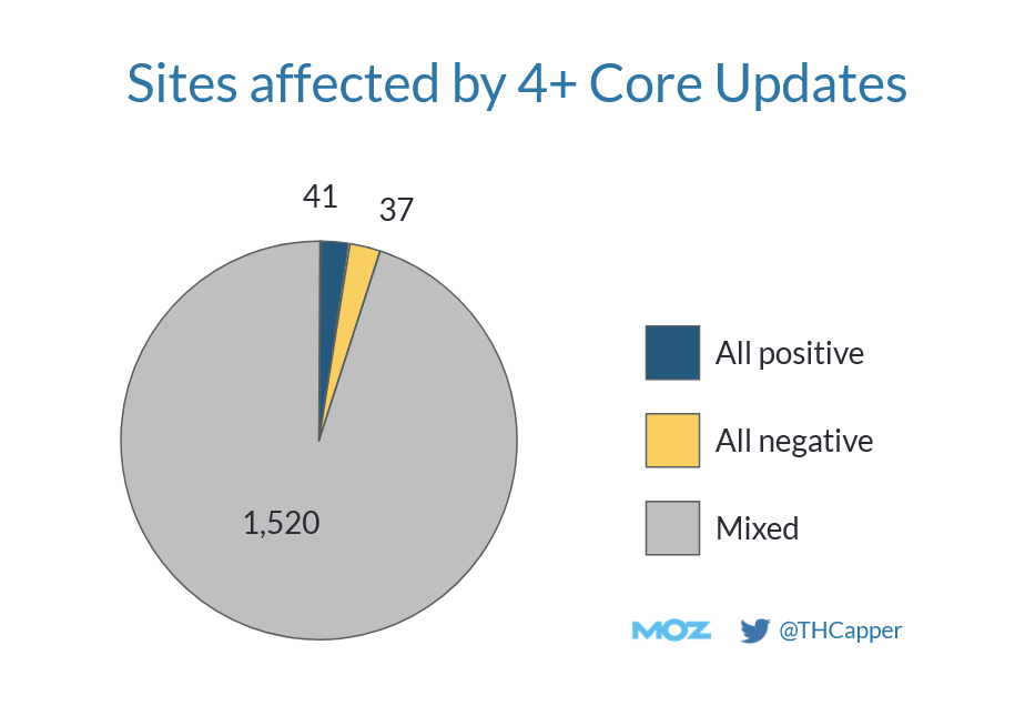 This is not just how I feel about it as a disgruntled SEO — this is what the data shows. Looking at sites affected by Core Updates since and including Medic in MozCast, the vast majority have mixed results.
