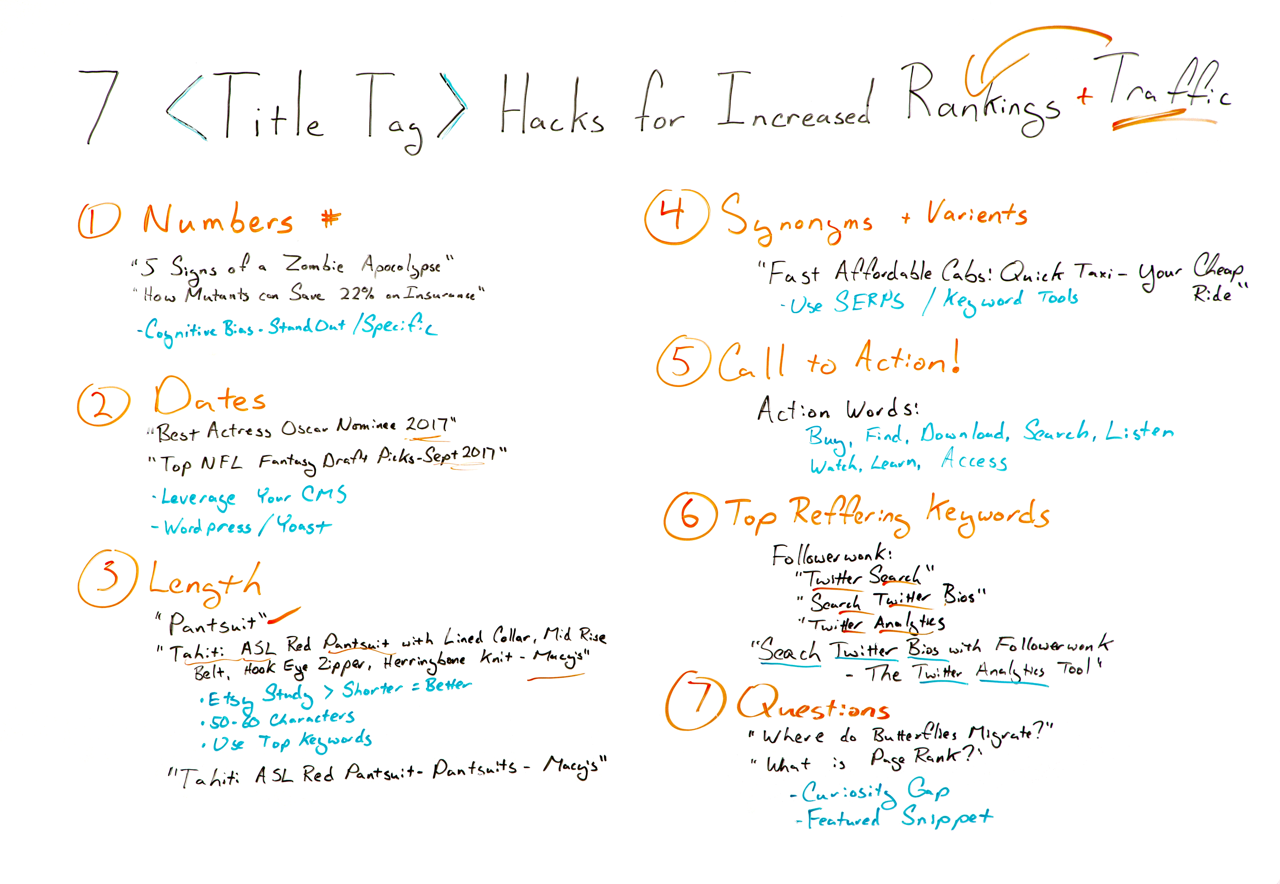 So the important thing to remember is that these are things to experiment with. Not all of these hacks are going to work for you. SEO is founded in best practices, but true success is founded when you experiment and try different things. So try some of these out and these will give you an idea of where to get started in some of your title tag experiments.