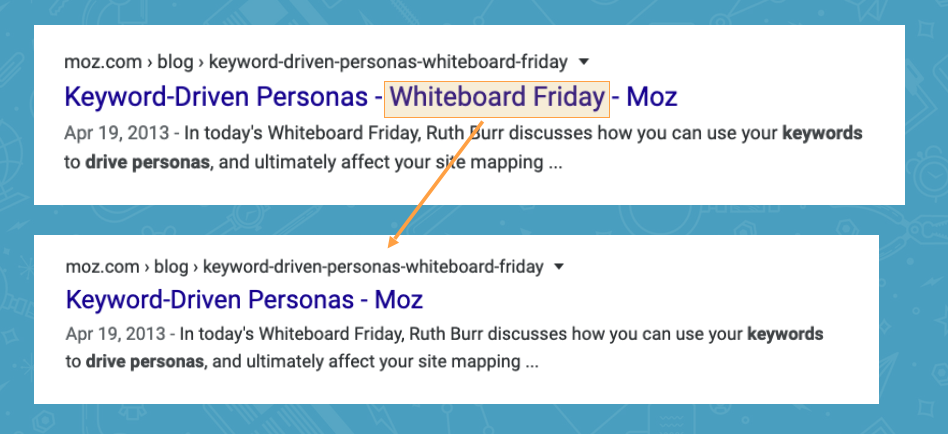 Crazy, right? If it worked by removing "Whiteboard Friday" would we see the same uplift by removing "Moz?"