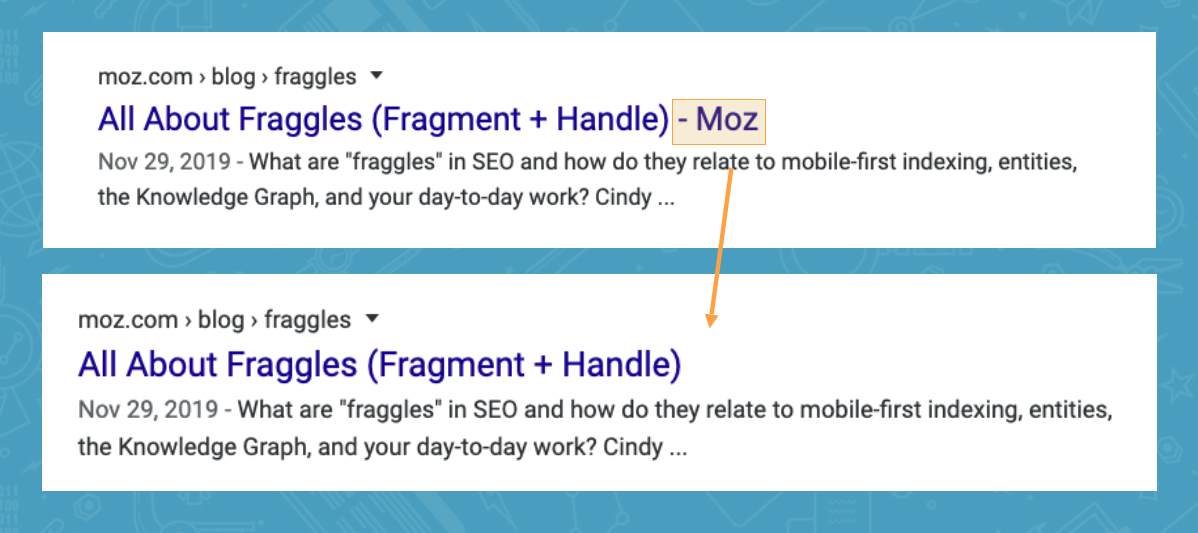 For this A/B experiment, we did exactly that—removing the word "Moz" from 50% of our titles and measuring the results.
