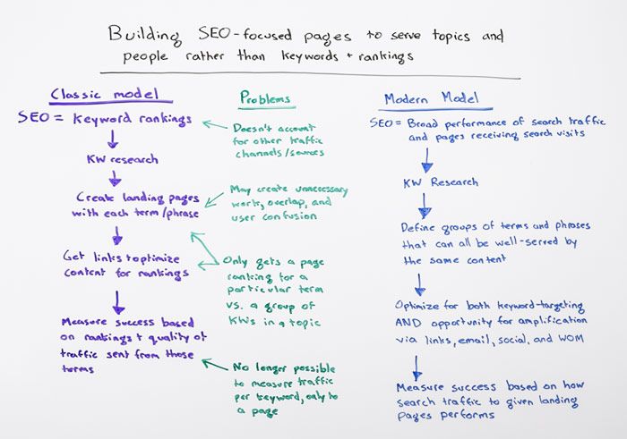 Howdy, Moz fans and welcome to another edition of "Whiteboard Friday." This week, I want to talk to you a little bit about the classic technique of building SEO pages for keywords and rankings versus the more modern technique of trying to do this with people and topics in mind. So, let me walk you through the classic model and show you why we've needed to evolve.