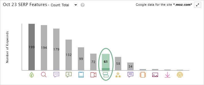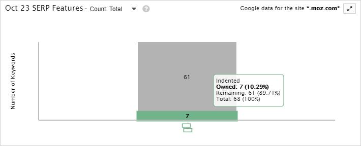 This is a bit easier if you zoom in on a single SERP feature, but the indented results bar is broken into two smaller bars showing both owned and unowned data: