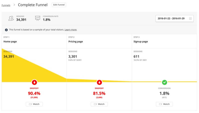 Then, you can view session recordings of that step in the funnel and see where people are getting confused or frustrated with your shopping cart process. Pretty cool, right?