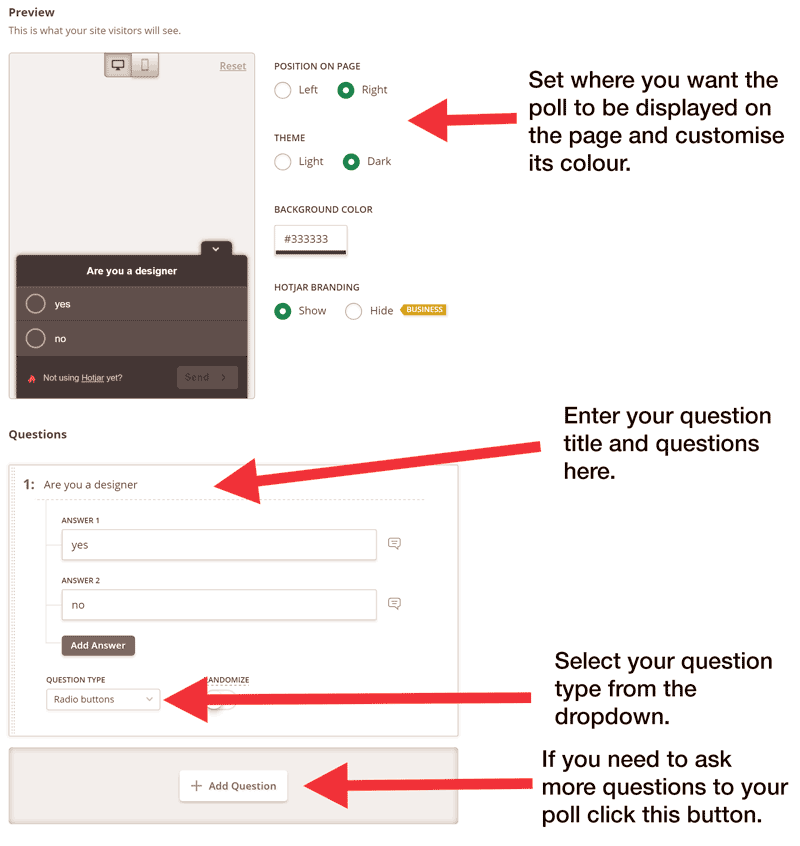 Lastly, you can leverage polls on Hotjar — they’re effective because they give your customers a chance to voice what they think of your site. Try asking questions like “What is keeping you from getting your [insert product name or offer] today?”