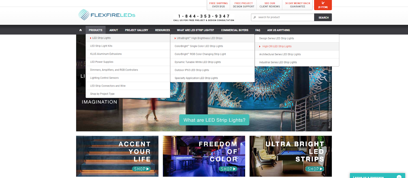If you offer a service instead of a product, do you have separate services with different functions that fall under that parent service? You can see how Flexfire LED guides you to the right product with their structured product menu. Could you imagine if this was just one long list of all products with no categories? It would be chaotic.