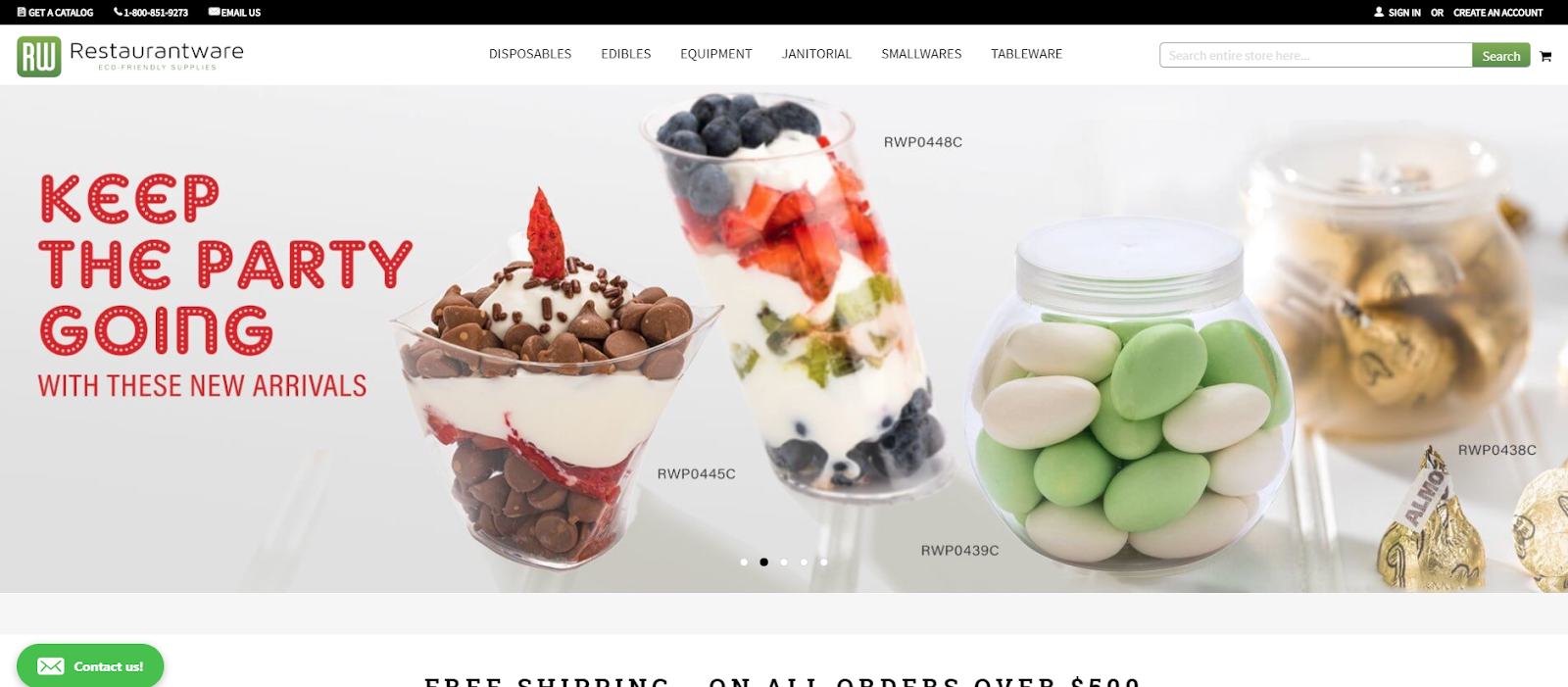 Restaurantware.com has several rotating banners showing the top and latest products they have to offer, keeping their customers constantly in the know and wanting to learn more.