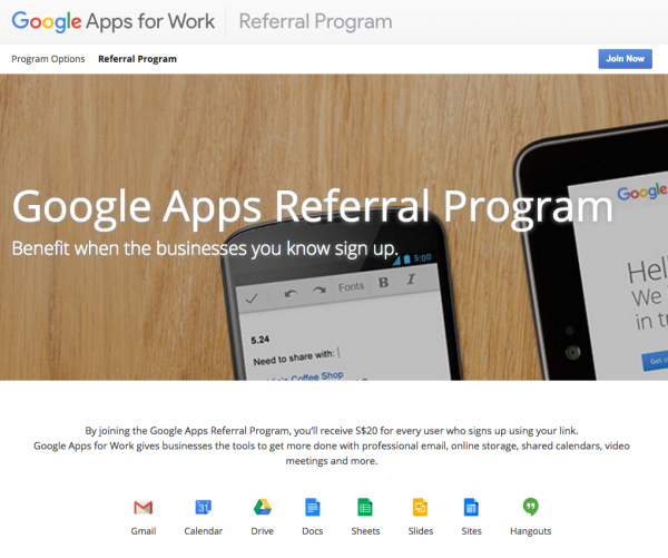 Take a look at the Google Apps Referral Program. Google gives money rewards for every user who signs up through the advocate’s link.