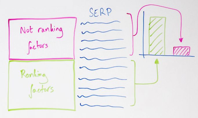That's totally consistent with this kind of setup, where if you are currently trying to edge in the bottom or you're competing for less competitive search terms, then this kind of approach might really work for you and it might, in fact, be necessary to get into the consideration set for the more competitive end. But if you're operating on a much bigger site, you've already got the competitive domain authority, you and your competitors are all very powerful sites, then our kind of hypothesis is that you're going to be needing to look more towards the user experience, the conversion rate, and intent research.