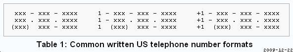 In the US and Canada, most telephone numbers are written in a very small number of formats like: