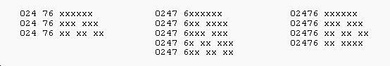 All but three of those 'mask' the real area code and all of them mask the exchange code (the next four digits after the 024 area code).