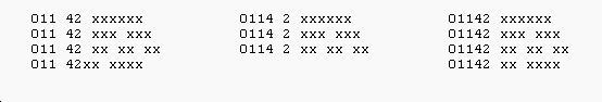At this point it should be noted that most of the remaining 01 numbers not already listed above, are formatted as: