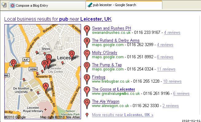 I undertook a quick and informal survey using a number of 'local' search terms, such as 'Pub Nottingham', 'Restaurant Leicester', 'Office Furniture Leeds' and so on.