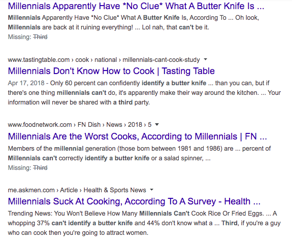 As it turns out, only 64% of millennials could correctly identify a butter knife. Publishers jumped at the stats revealing millennials have a tough time in the kitchen. Having a thesis and an idea of what we wanted the project to look like in advance had a tremendous positive impact on our results.