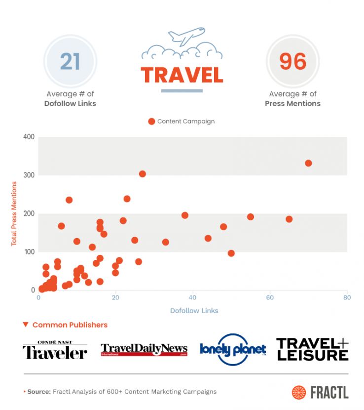 “Travel writers love to extract ‘tips’ from the content they're provided. If your project provides helpful information to travelers or little-known statistics on flights and amenities, you're likely to gain a lot of traction in the travel vertical,” says Delaney Kline, Brand Promotions. “Come up with these ideal statistics before creating your project and use them as a template for your work.”