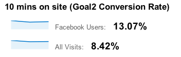 Looks like driving users over from the Facebook page could be an area to think more about! They reach this target 50% more of the time than the average user. Just another little example of the kind of things you could be thinking about - I'd love to hear more suggestions and discussion in the comments for what other facets could be useful to look at.