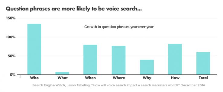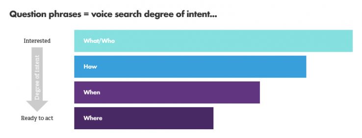 Many are not dissimilar to typed search, but clearly intent priorities change. The aforementioned Microsoft study also looked at how this may work, suggesting the following order of question types and their association with purchase/action: