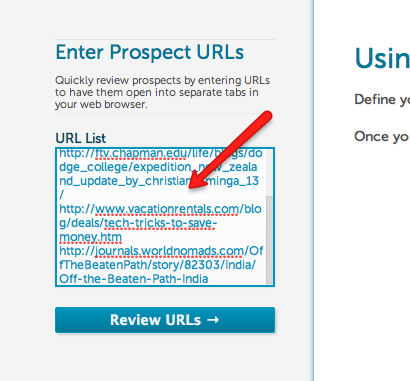 6. Paste them into Ontolo’s Link Reviewer: http://ontolo.com/link-building-url-reviewer