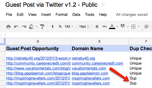 9. Because no one expects you to remember all of the linking prospects in column D, it will tell you if there’s a duplicate in column F: