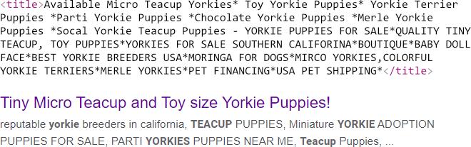 This scenario tends to overlap with 1-3 — sometimes titles are too long and have clearly been stuffed with keywords. I can’t speak to anyone’s motivations, but here’s an example that seems pretty egregious: