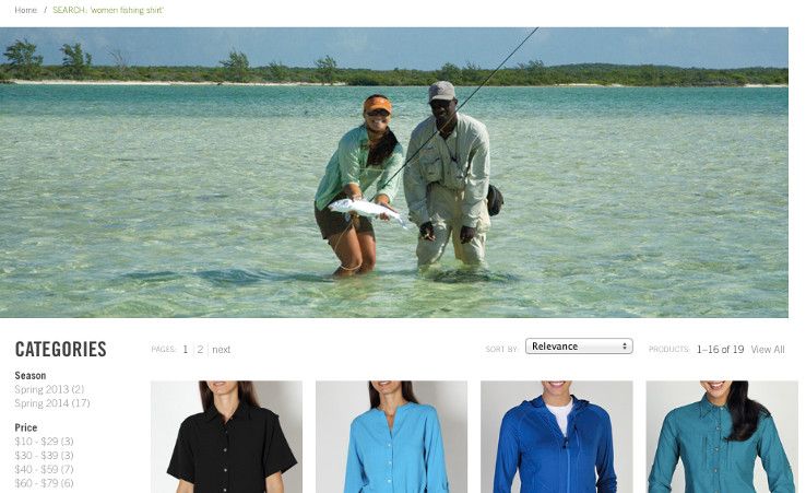 Outdoor and travel clothing brand ExOfficio is known for their fishing clothing. Fishing is considered a male market, but they do a great job making the same fishing clothing for women too. Sure, they might add in different styling and colors and offer some variations geared toward women's fashion, but their imagery and their core offering of fishing clothing doesn't shout out that these are women fishing.