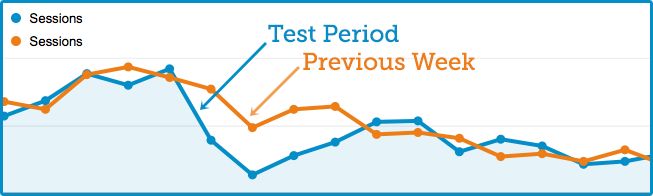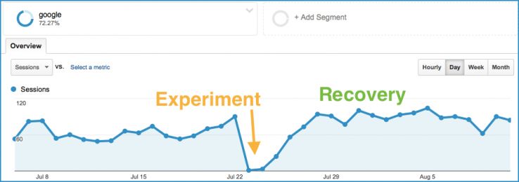 Here's another shot of organic traffic before and after the second experiment.