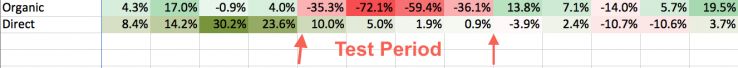 The effect on direct vs. organic traffic