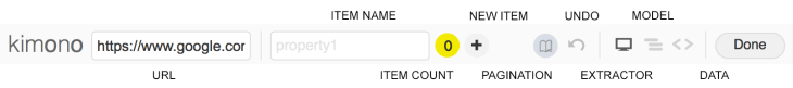 It is basically the default results page, but on the top you should see the Kimono Tool Bar. Let's have a close look at that: