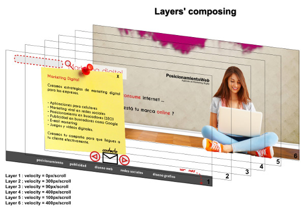 - If you design a SEO Parallax Scrolling website design the layers (3D) to help you interpret how search engines and users will see them. Here is an example. Don't forget to design the 3D views for all devices (Tablet, smartphone and full screen). Here is a SEO parallax scrolling tutorial if you are interested in using these techniques together. Please note that parallax scrolling websites do not have to be on just one URL. This is a common misconception. Here are some recent articles about how to solve one page parallax scrolling and SEO.