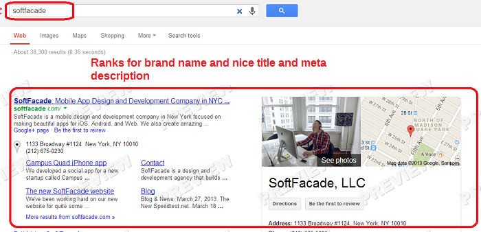 Softface did accomplish ranking for its brand name and some keywords yet it did not accomplish 100% onsite optimization. In some cases the URLs do have unique titles and meta descriptions yet they lack H1's and keywords in the content.
