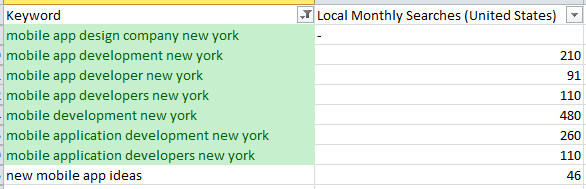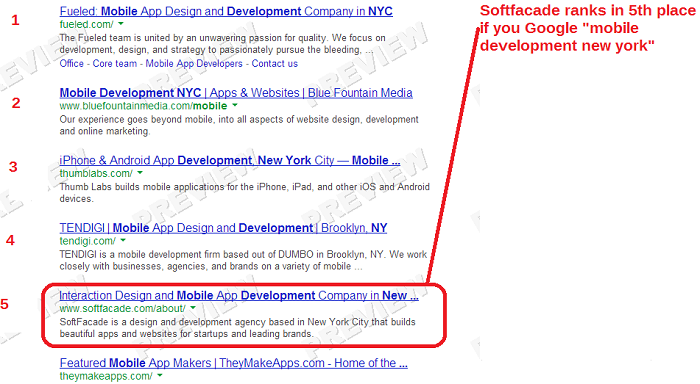 SERP for the keyword "Mobile development New York" from New York City.