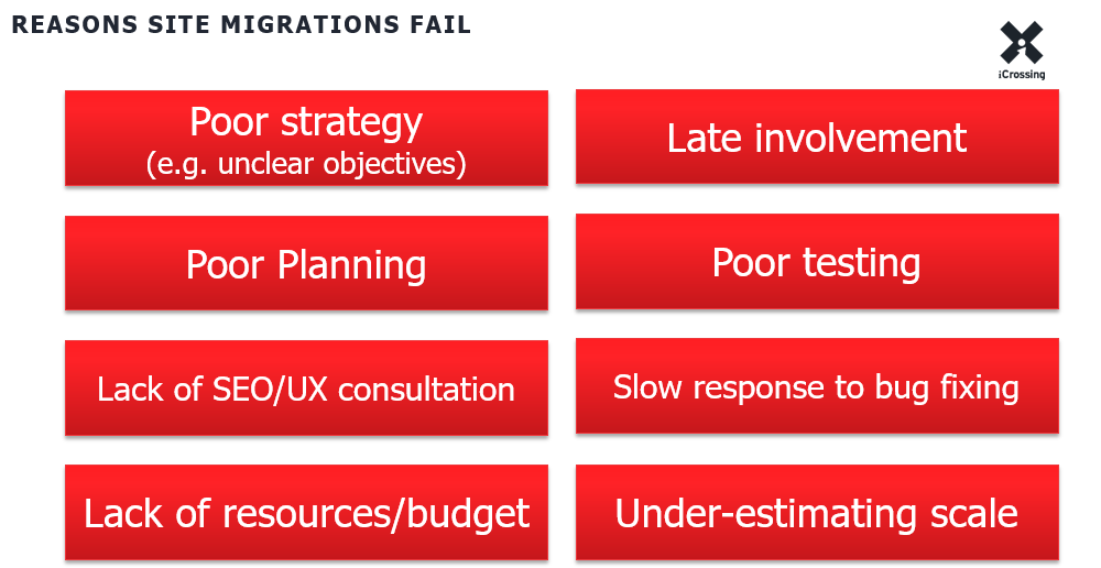 Even though every site migration is different there are a few common themes behind the most typical site migration disasters, with the biggest being the following: