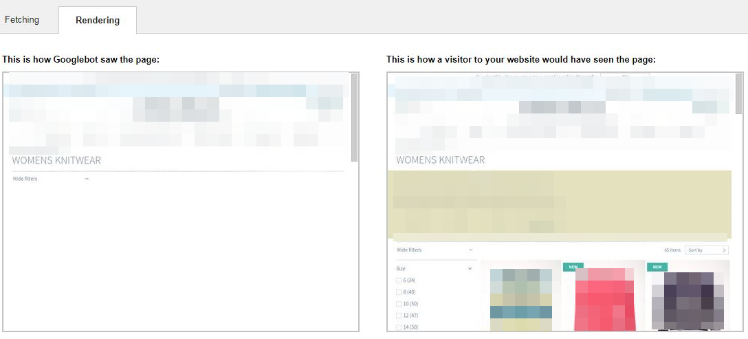 Pro tip: Use the “Fetch as Google” feature for each different type of page (e.g. the homepage, a category, a subcategory, a product page) to make sure Googlebot can render the pages without any issues. Review any reported blocked resources and do not forget to use Fetch and Render for desktop and mobile, especially if the mobile website isn’t responsive.