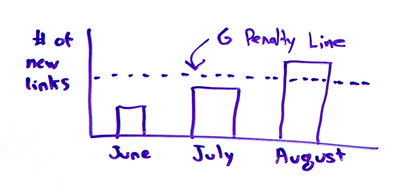 Let's try and think about this. Like Google has some sort of penalty line where they look at, "Oh, well, look at that. We see in August, Rand got 17 links. He was under at 15 in July, but then he got 17 links in August. That is too fast. We're going to penalize him."