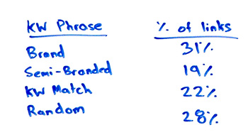 So this idea that essentially there's some magic formula for how many of your keyword anchor text, anchor phrases should be branded, partially branded, keyword match links that are carrying anchor text that's specifically for the keywords you're trying to rank for, and random assorted anchor texts and that you need some numbers like these, also a crazy idea.