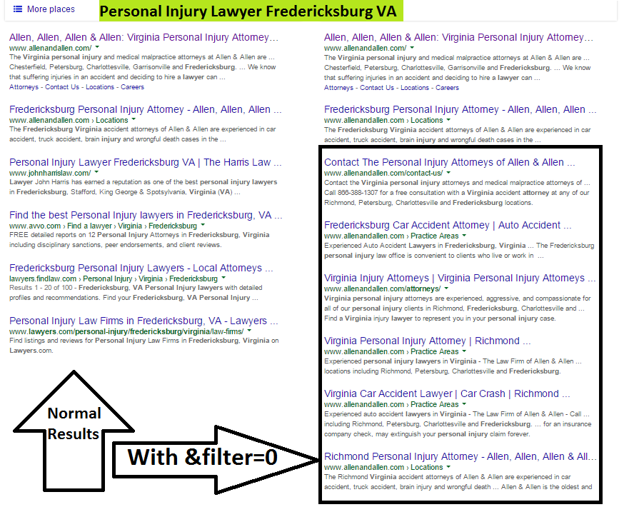 However, when you add &filter=0 to the end of the URL string, you will see that most of these location pages are being filtered out. Adding this search operator to the URL is the same as if you went to the last page of results and click the message that states: