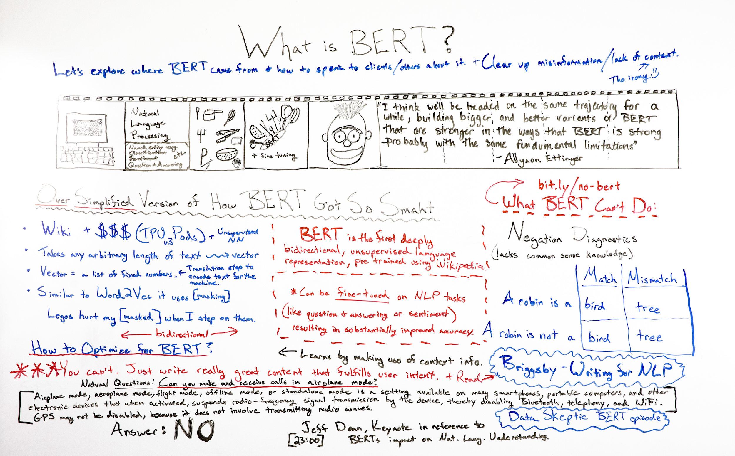 One thing I just have to mention because I honestly cannot get this out of my head is this Keynote by Jeff Dean of Google. He's speaking about BERT and then goes into natural questions and natural question understanding. The big takeaway for me was this example around, okay, let's say someone asked the question, "can you make and receive calls in airplane mode?"