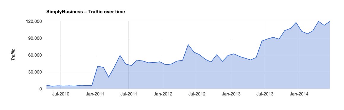 Simply Business was held up in the SEO myth post as an example of this kind of link building not working. I would argue the opposite, holding it up as an example of it working. So how can this be?